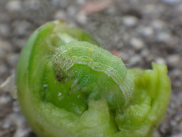 一つくらい「はらぺこあおむし」が食べてもいいのですが、穴から見えているのは頭かお尻か?