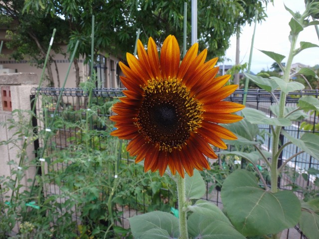 毎朝水をやるのですが、いよいよ本格的夏になりました。朝だけでは足りません。夕方4時ごろになるとヒマワリとこすもすの葉から水不足のサインが出ます。