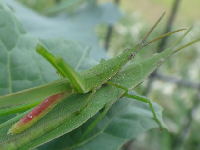 9月12日のドリカムタイムでダイコン、ホウレンソウ、ニンジンの種とブロッコリーの苗を植えました。9月19日の「えんちょうの独り言」ではふたばでしたが、本日9月26日にはそれぞれ本葉がでてきました。ブロッコリーにはオンブバッタが住み着きました。