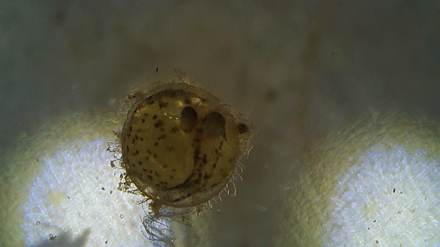 卵を拡大してみるともうすぐメダカの赤ちゃんになりそうなのもいます。