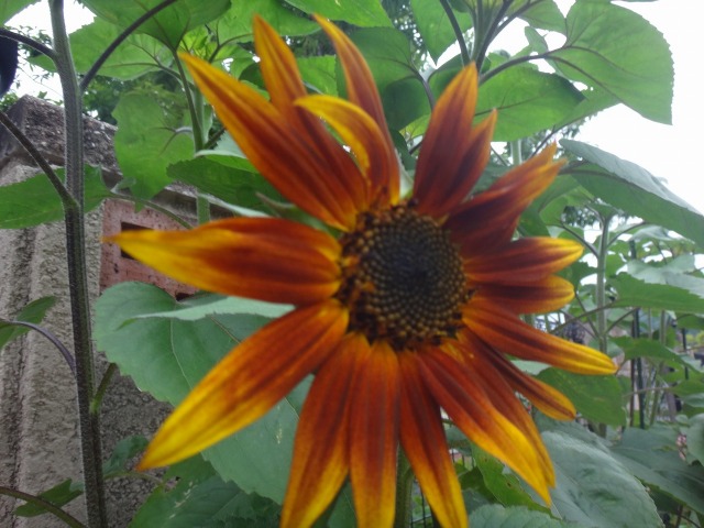 ヒマワリが咲き始め、小さなキュウリもできました。もう初夏の気分です。