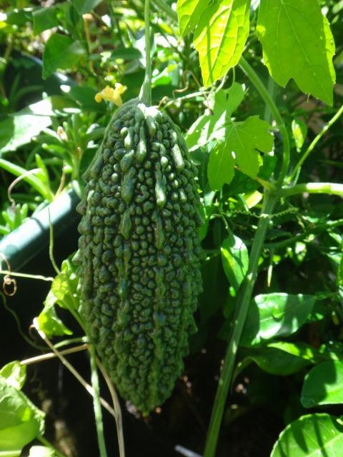 暑さのためガーデニングも腰が引けて庭は草だらけです。それでもゴーヤはなりました。幼稚園のガーデニングにぴったりの植物です。
