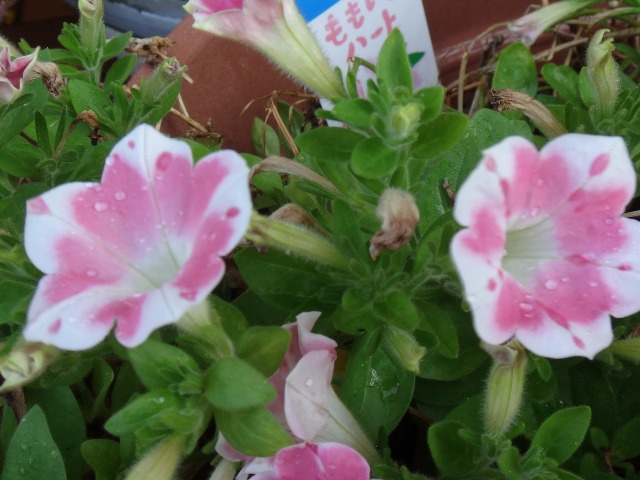 「ももいろハート」という商品名のサフィニアが夏を越えてくれました。初夏のころと一味違う花をつけ、目を楽しませてくれています。温度や肥料の与え方でハートの形が変わるのだそうです。初夏のころと同じ植物体なので遺伝子が変わったわけではありません。環境、特に夏の暑さと最近の朝夕の過ごしやすい気温の影響でしょう。環境の大切さを感じています。